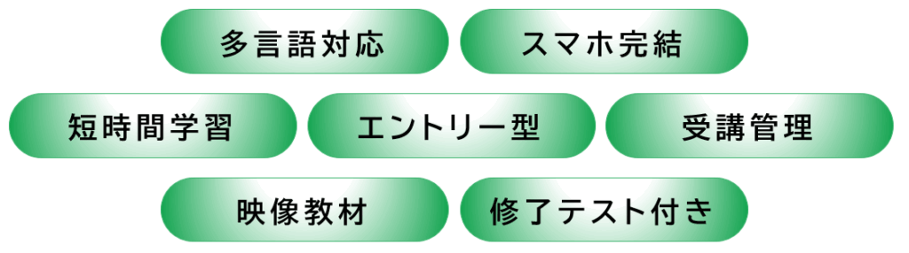 この安全衛生教育プログラムのサービスには、現場で働く一人ひとりに安全意識を高める学びを届け、自発的・継続的に学習を促すためのしくみ、仕掛けがあります。