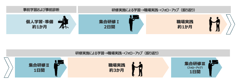 研修前後に取り組むべきことや活用する診断ツールなどをまとめています。
