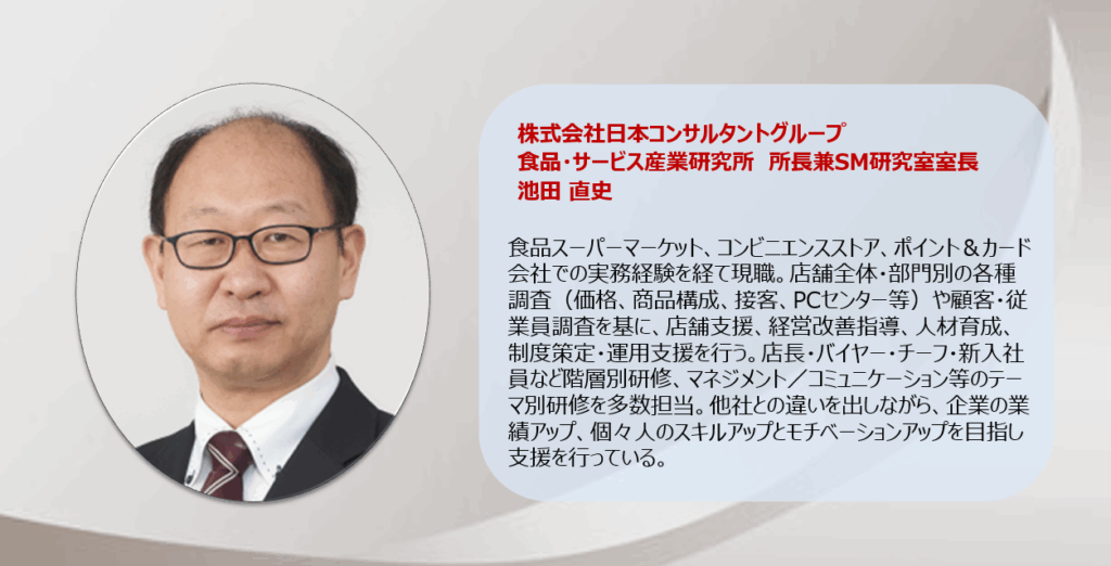 | 対象者 | ・スーパーマーケットの教育担当者(人事・教育推進・営業など) ・経営者層 |