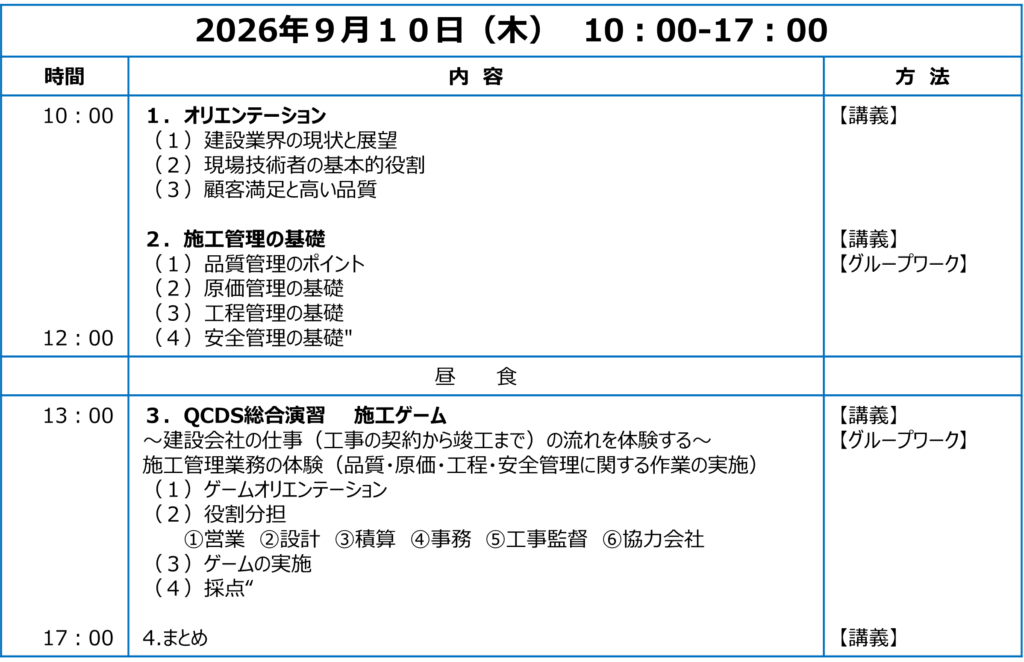 | 開催日時 | 2026年9月10日(木) 10:00-17:00 |